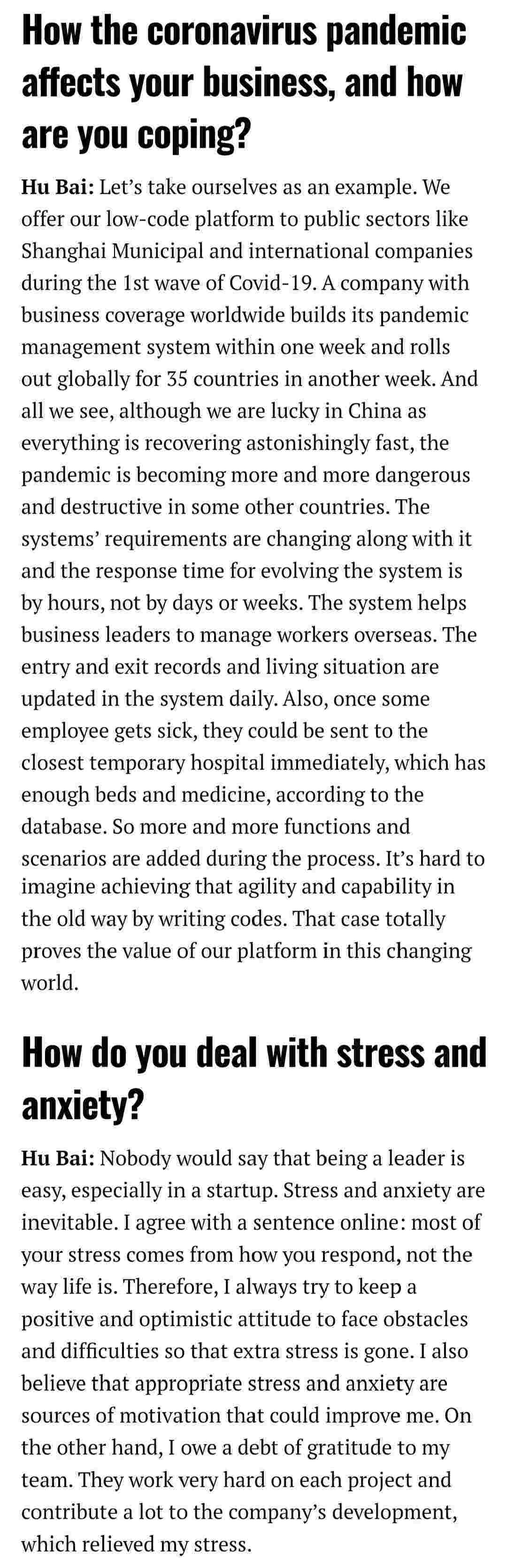2021年年初,,,,,,,爱湃斯科技CEO胡柏受邀接受法媒Startup.info的专访,,,,,,,,与Startup info的读者分享了自己的创业经历、、、、、、、、、、以及低代码平台VIVO钱包的创新之处。。。。。。。。。。。。。。